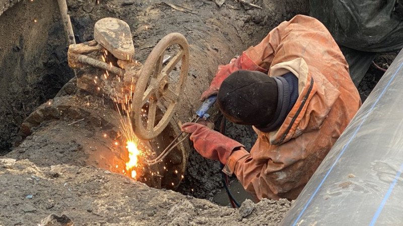 "Почали шукати. Витоків ніде немає, одне, що залишилось, — це вода стікає в річку, це дюкер пропав. Ми зараз у стару трубу в неї методом санації заталкуємо трубу діаметром 315 — це меншого діаметру. Труба в трубу. Зараз вже 60 метрів протолкнули, всього десь близько 200 метрів", — каже Тельпіс.