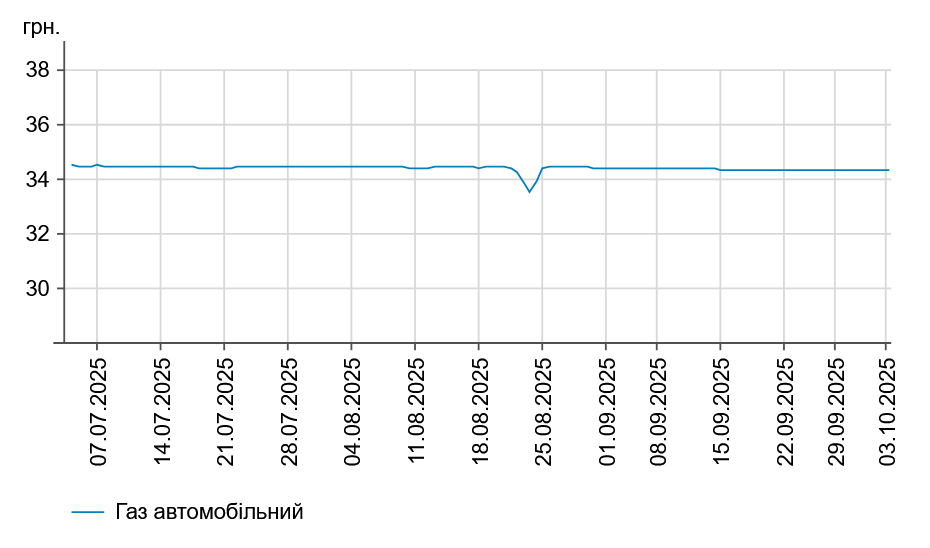 Зокрема, зафіксовано такі середні ціни на пальне: бензин марки А-95 (преміум) — 63,24 грн/л; бензин марки А-95 — 58,73 грн/л; бензин марки А-92 — 55,83 грн/л; дизельне пальне — 55,88 грн/л. Середня ціна автогазу становить 34,31 грн/л, що відповідає рівню попереднього дня.