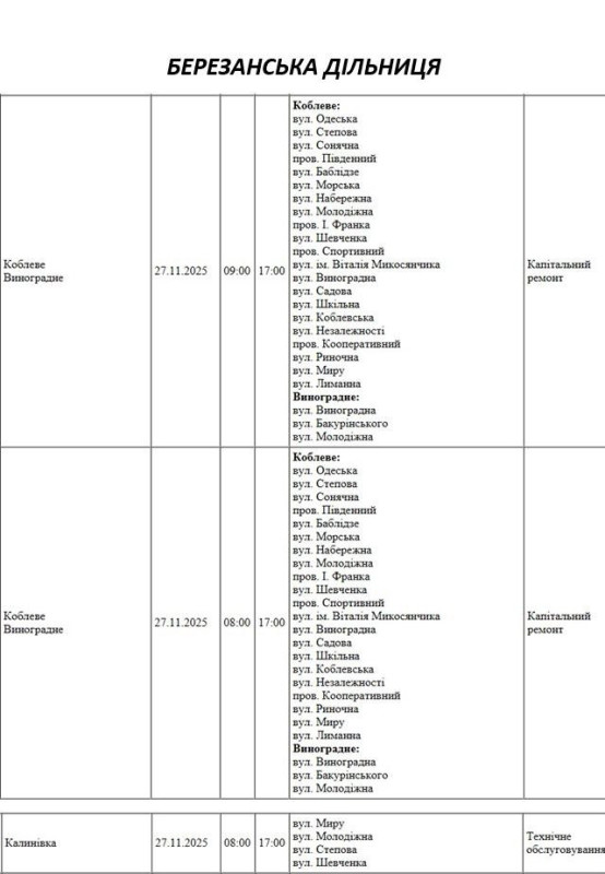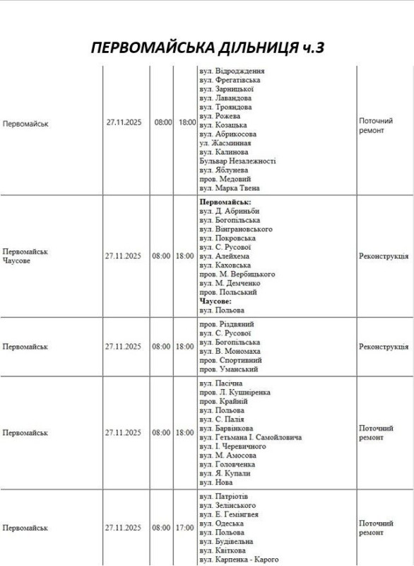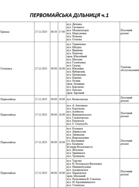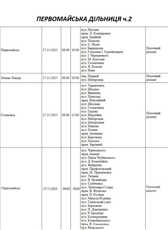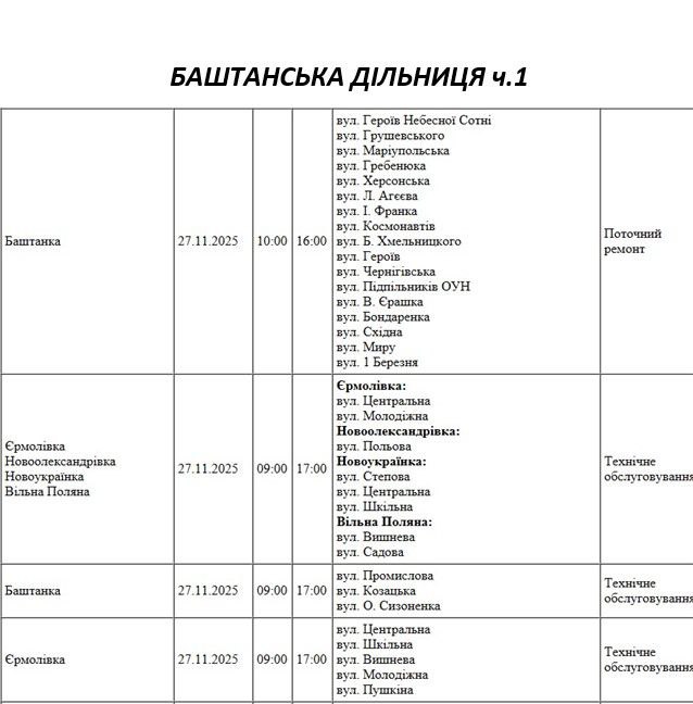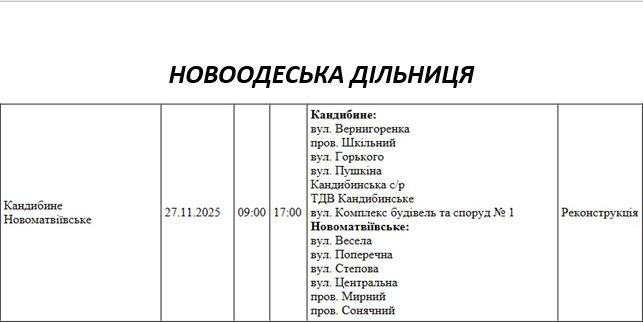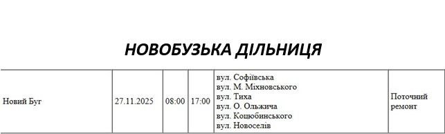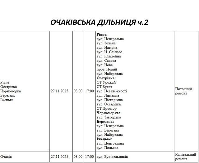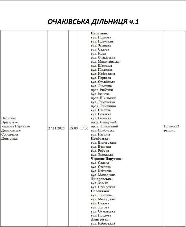 На Миколаївщині 27 листопада частина вулиць залишиться без електропостачання. Це пов'язано з ремонтами, технічним обслуговуванням та реконструкціями.