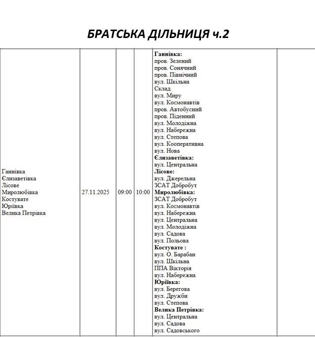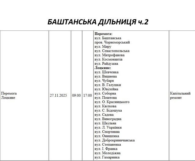Графік відключення світла на Миколаївщині АТ «Миколаївобленерго»