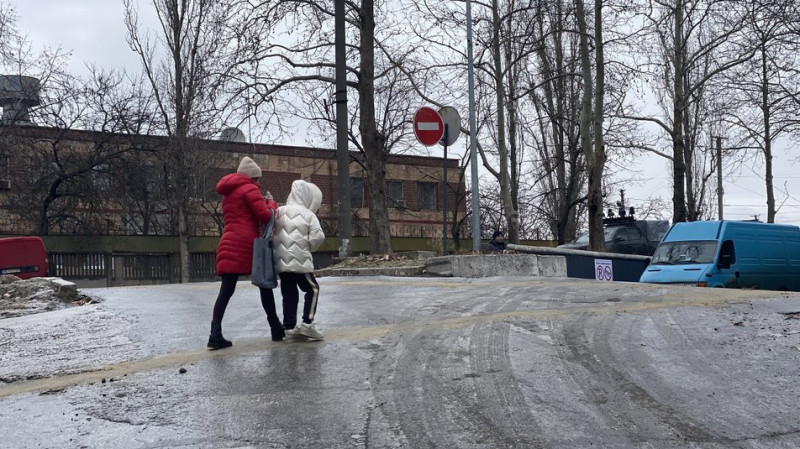 У відомстві додали, що рух здійснюється з урахуванням безпекової ситуації, оскільки на дорогах і тротуарах міста утворилася ожеледиця.
