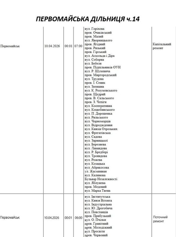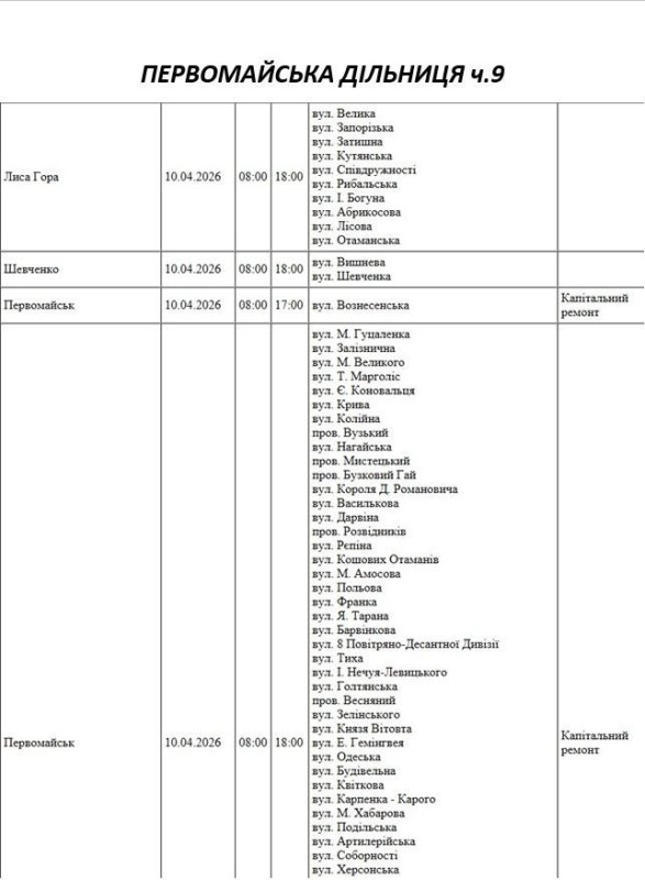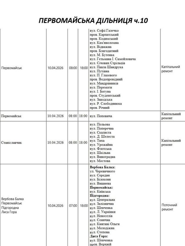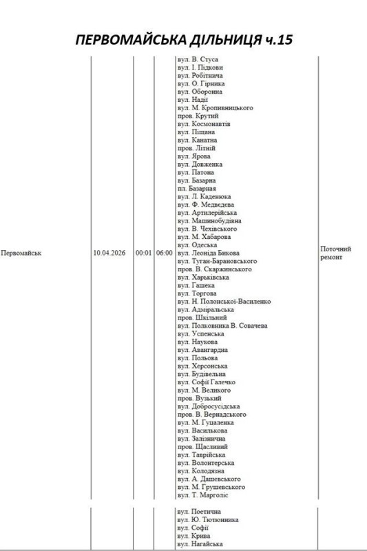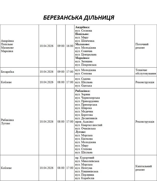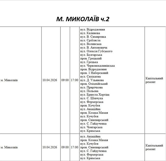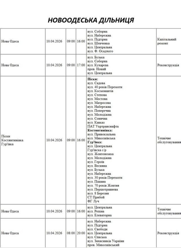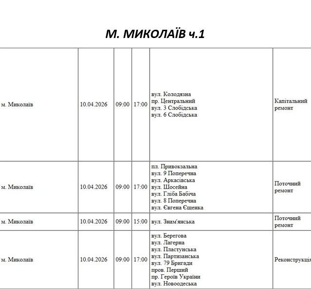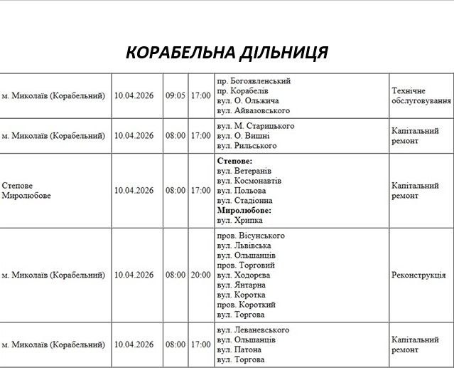 На Миколаївщині 10 квітня деякі вулиці залишаться без електропостачання. Це пов'язано із поточними ремонтними роботами, реконструкціями та технічним обслуговуванням.