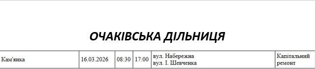 Графік відключення світла по адресах 16 березня, Очаківська дільниця. АТ «Миколаївобленерго»