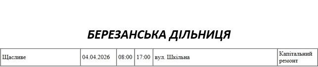 Графік відключення світла по адресах 4 квітня, Березанська дільниця АТ «Миколаївобленерго»