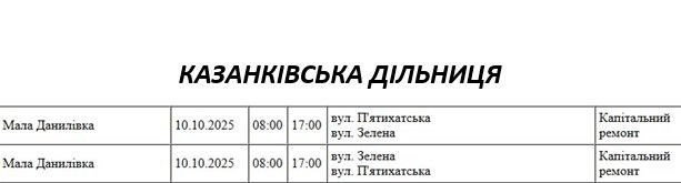 Графік відключення світла по адресах 10 жовтня, Казанківська дільниця. АТ «Миколаївобленерго»