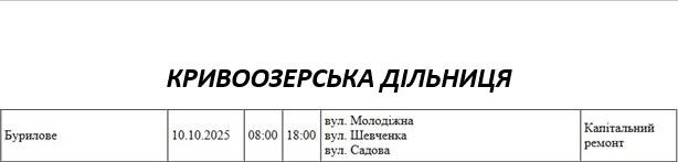 Графік відключення світла по адресах 10 жовтня, Кривоозерська дільниця. АТ «Миколаївобленерго»