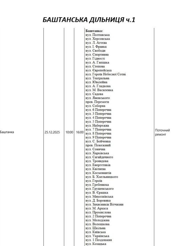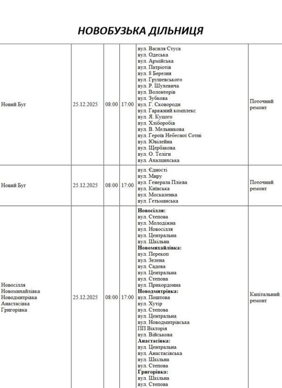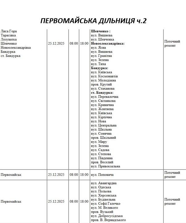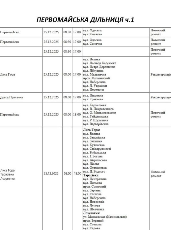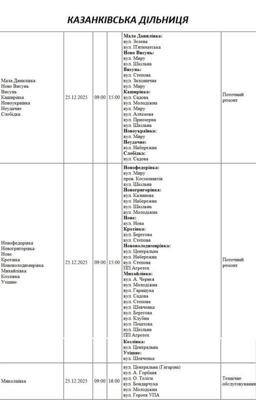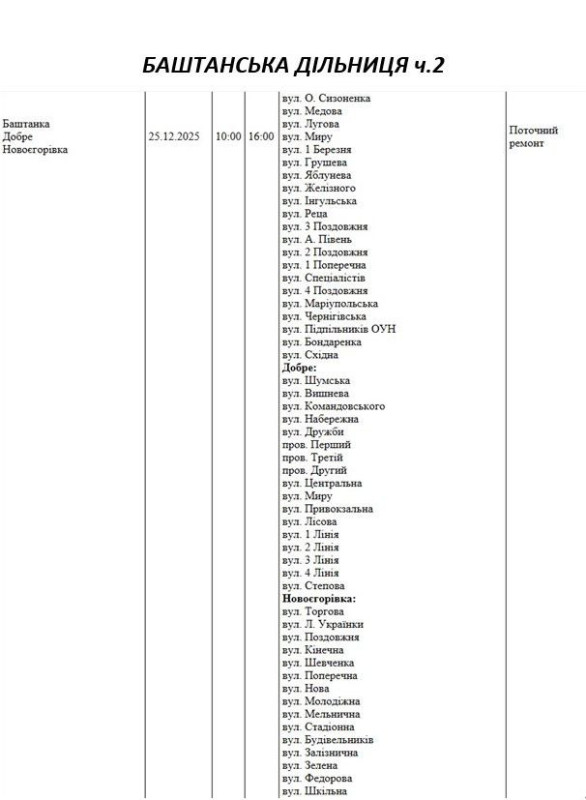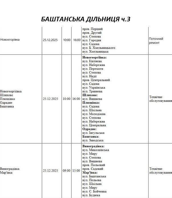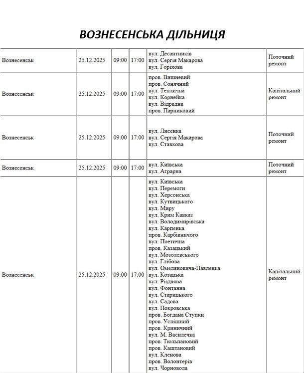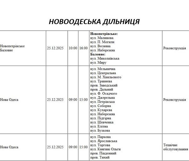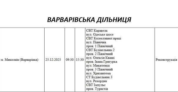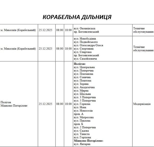 На Миколаївщині 25 грудня частина вулиць залишиться без електропостачання. Це пов'язано з ремонтами, технічним обслуговуванням, модернізаціями та реконструкціями.