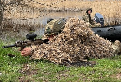 Підрозділ спішується з човна та, прикриваючи одне одного, рухається до умовної висоти. На відміну від бойових умов, в ході навчань є час на відпрацювання навичок, говорить шкіпер 40-ї бригади Олег.