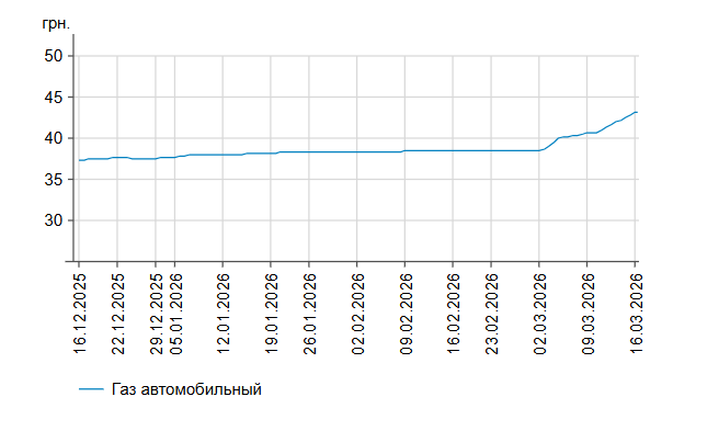 У понеділок, 16 березня, середня ціна на бензин марки А-95 зросла на 17 коп. до 69,31 грн/л, на дизельне пальне — зросла на 1 грн 85 коп. до 76,76 грн/л.