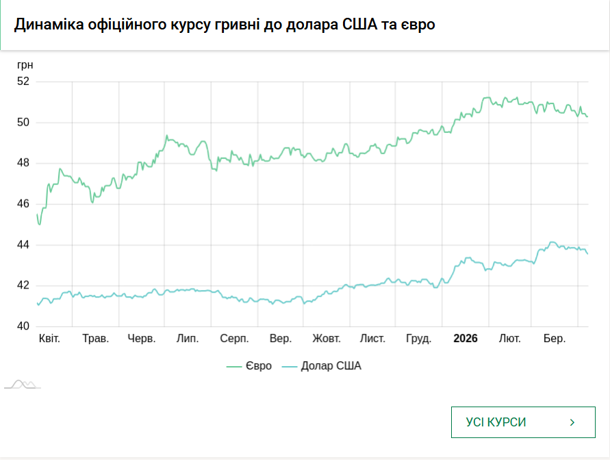 Як повідомляв Укрінформ, у проєкті державного бюджету на 2026 рік уряд закладає розрахунковий середньорічний курс гривні до долара на рівні 45,6 грн/$.
