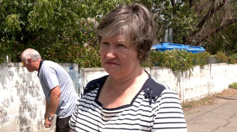 Валентина разом зі своєю сусідкою приїхали до точки видачі питної води, щоб набрати її на кілька днів.