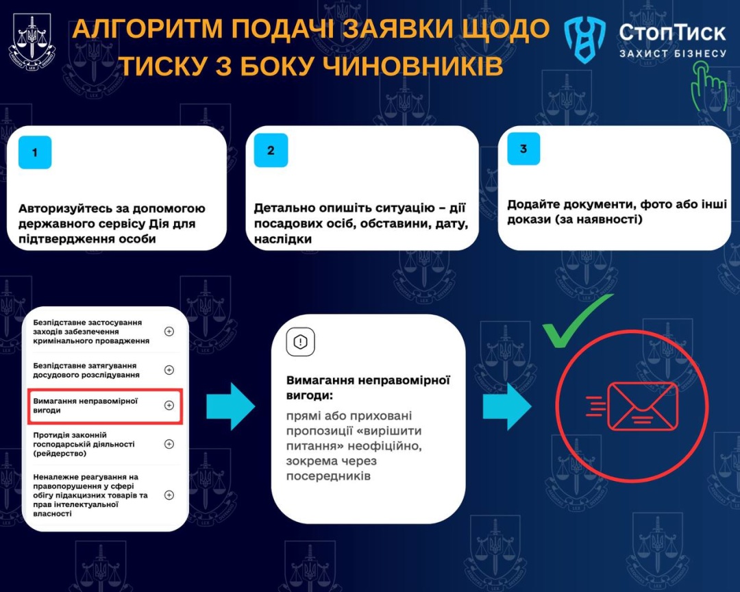 «Це не декларація. Це практика. Мій меседж до підприємців простий. Якщо ви відчуваєте тиск, з вас вимагають хабар, затягують справу або ви бачите процесуальні зловживання, звертайтесь напряму через «СтопТиск». Тоді проблема не залишиться у коментарях. Вона отримає рішення», – пояснив він.