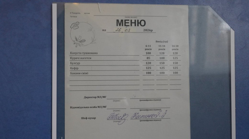 "Директорами закладів освіти наказами призначено відповідальних осіб за організацію харчування, визначено їхні обов’язки та створено бракеражні комісії. Для якісної організації харчування у кожному закладі розроблено механізм своєчасного замовлення харчування (кількості дітей) та доведення цієї інформації до постачальника послуги з харчування. Також складено та розміщено у їдальні графік поруч із тижневим і щоденним меню".