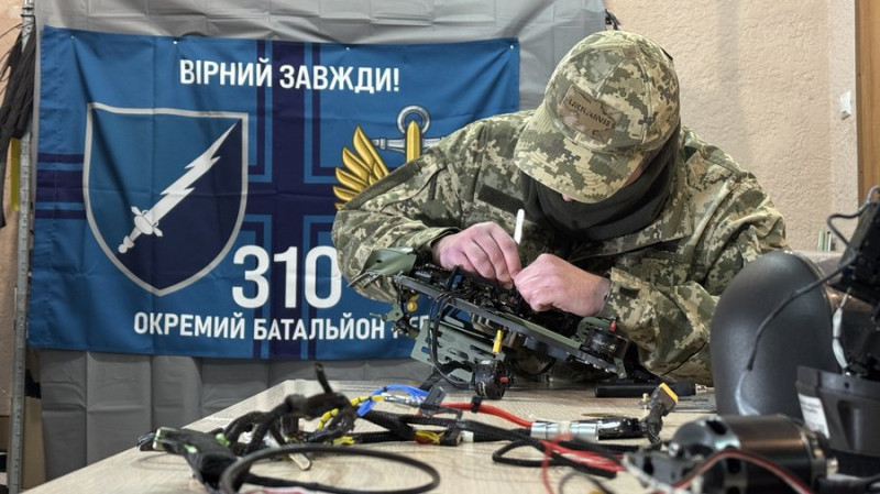 Військовослужбовець із псевдо Апачі розбирає російський дрон. Суспільне Миколаїв/Юлія Філімон