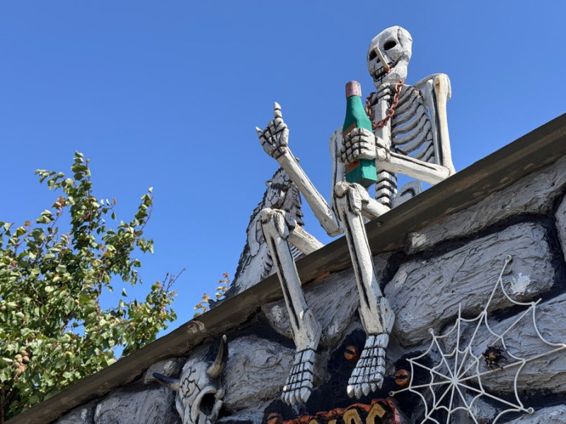 Скульптура скелета, яку зробив різьбяр Сергій. Миколаїв, червень 2025 року. Суспільне Миколаїв/Юлія Голокоз