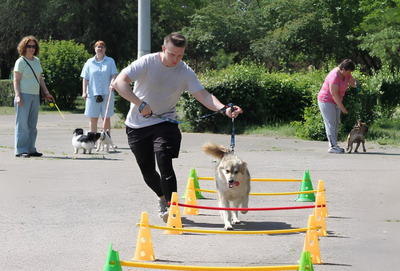 Господарі зі своїми собаками на груповому занятті виконують вказівки кінологині. Миколаїв, червень 2025 року. Суспільне Миколаїв/Богдана Будулуца