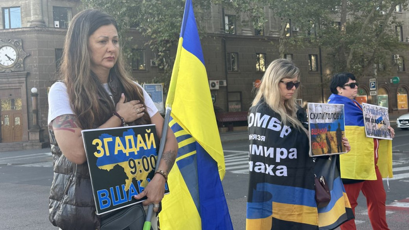 Місцева жителька під час акції-нагадування у Миколаєві, 21 вересня 2025 року. Суспільне Миколаїв/Назарій Рубаняк