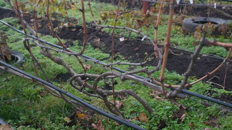 "Лозу ми обрізаємо, знімаємо, перекладаємо, пришпилюємо до землі будь-яким чином, можна скобами, зазвичай це робиться. І всі лози вкладаються через ряд і укриваються матеріалом укривним", — говорить він.