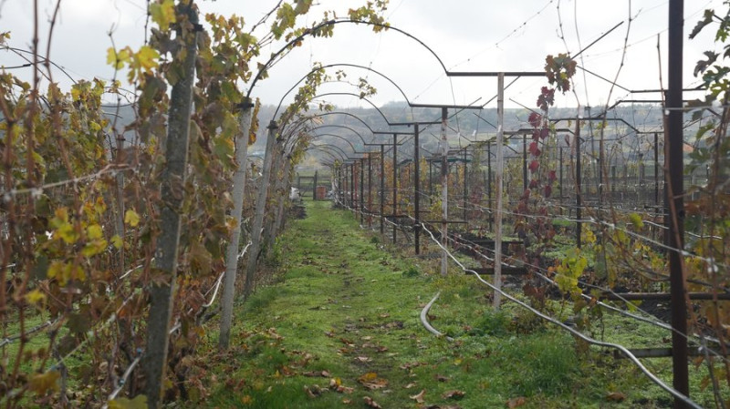 "Тому обрізку винограду ми робимо осінню та готуємо до укриття на зиму. Укриваємо ми зазвичай геотекстилемГеотекстиль — це геосинтетичний матеріал, що являє собою міцне полотно з синтетичних волокон, яке використовується для зміцнення ґрунту, армування конструкцій та розділення шарів у будівництві, ландшафтному дизайні та інших сферах.. Це облегшує працю на відміну від укриття землею. Переваги є в цьому матеріалі: він "дихає", не дає випрівати лозі й одночасно дуже добре дає змогу перезимувати їй".