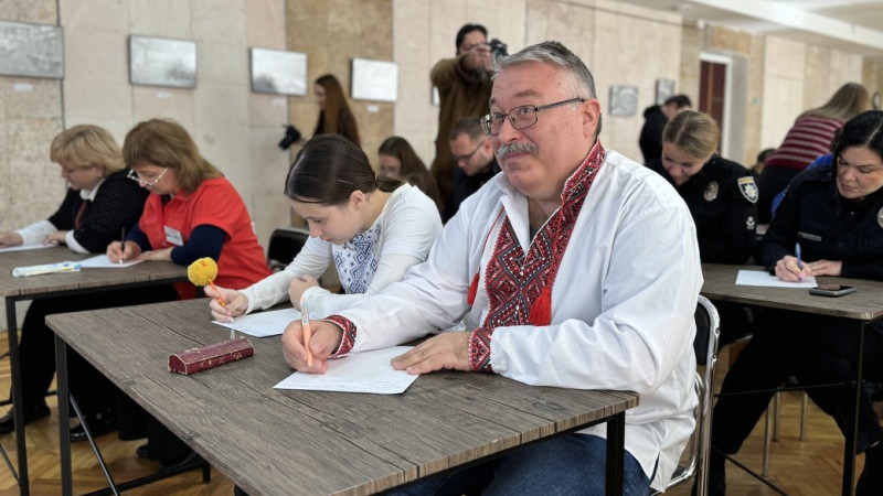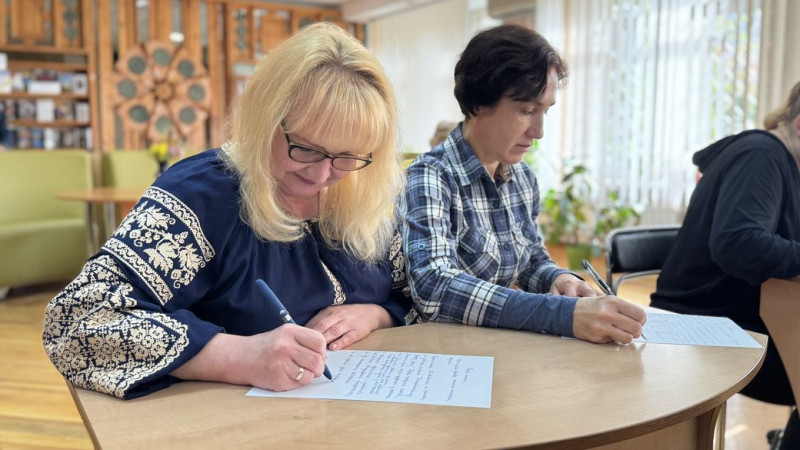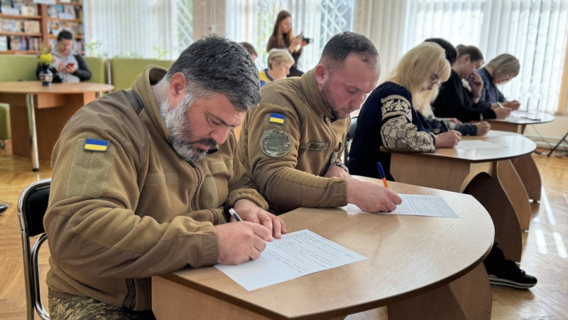 Близько 50 людей долучилися до написання диктанту — жителі та гості міста, військові, поліцейські та волонтери, говорить заступниця директора бібліотеки Любов Варюхіна.