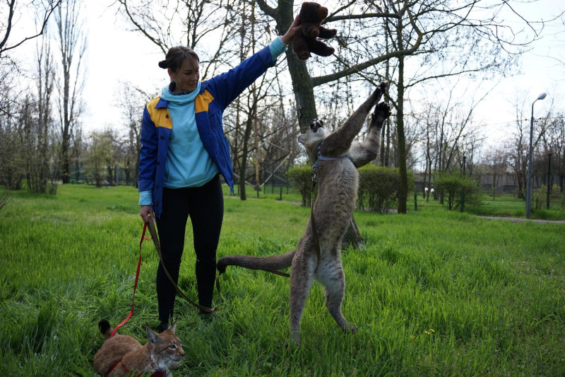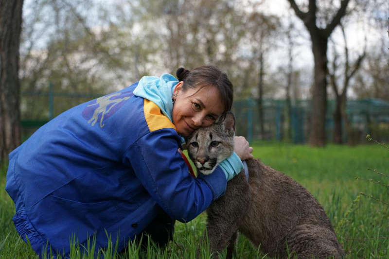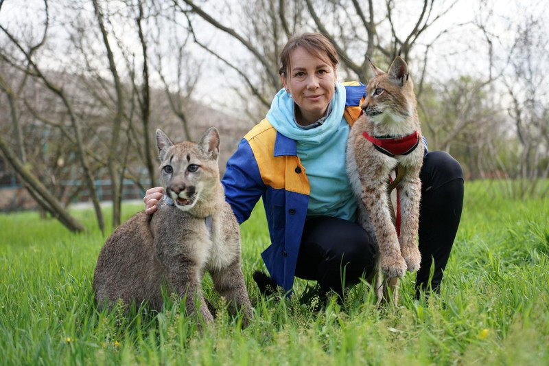 Працівниця зоопарку Тетяна Сінджоян виходила двох диких кішок — рись Марисю та пуму Аміну, які залишилися без материнської опіки.