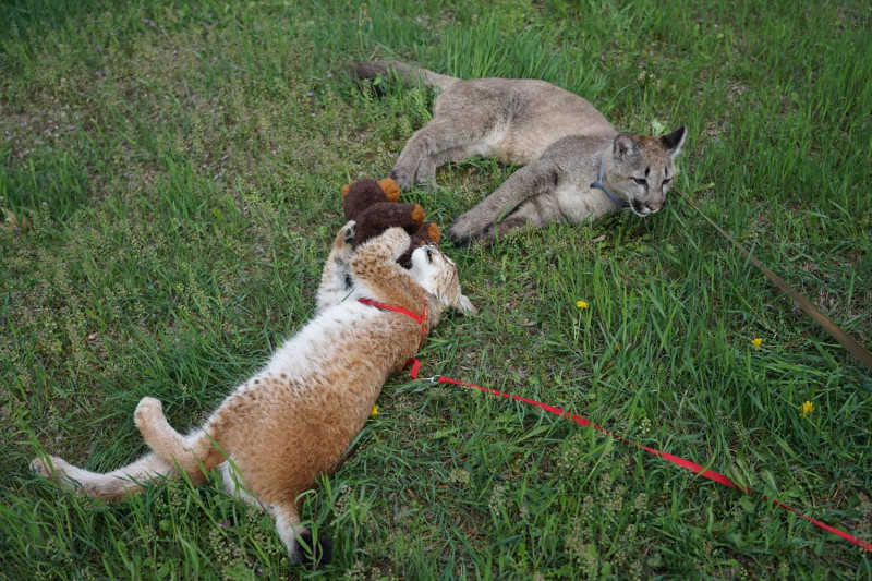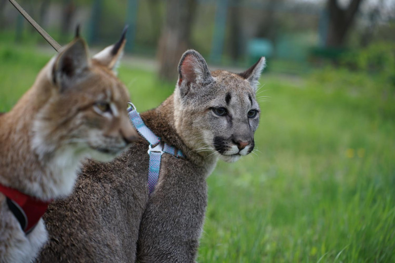 Рись Марися і пума Аміна поруч під час прогулянки. Суспільне Миколаїв/Олександр Гордієнко