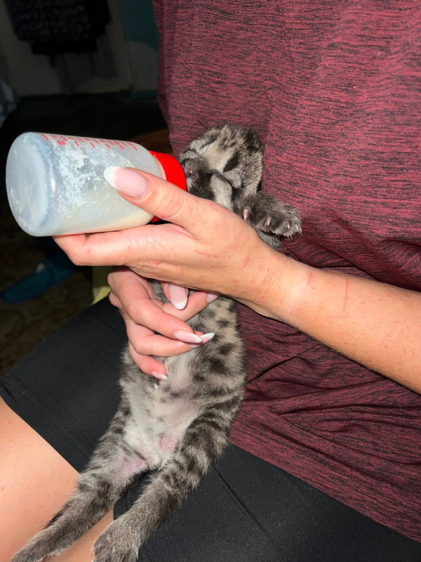 Рись спочатку доглядав ветеринар, а згодом її забрали додому до Тетяни. Пуму Аміну мама народила на два тижні раніше, ніж мало бути, говорить Тетяна.