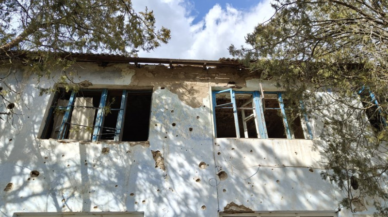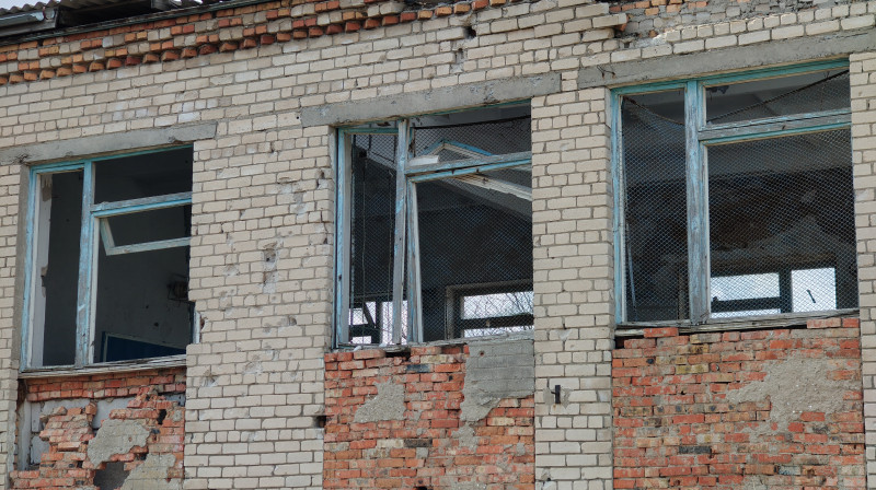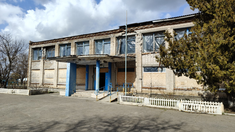 Пошкоджений внаслідок обстрілів навчально-освітній комплекс у Квітневому. Суспільне Миколаїв/Федір Бондар