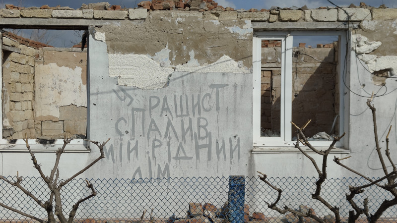 Місцева жителька Тетяна Шкорупа, яка нині живе в Миколаєві після отримання компенсації за зруйнований будинок, згадує свою розмову з окупантами: