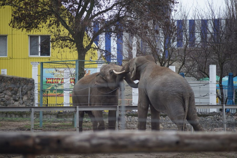 Слони Дінкар і Шанті граються у Миколаївському зоопарку, грудень 2025 року. Суспільне Миколаїв/Олександр Гордієнко