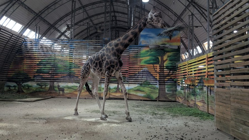 Жирафа у Миколаївському зоопарку в закритому вол’єрі, грудень 2025 року. Суспільне Миколаїв/Олександр Гордієнко