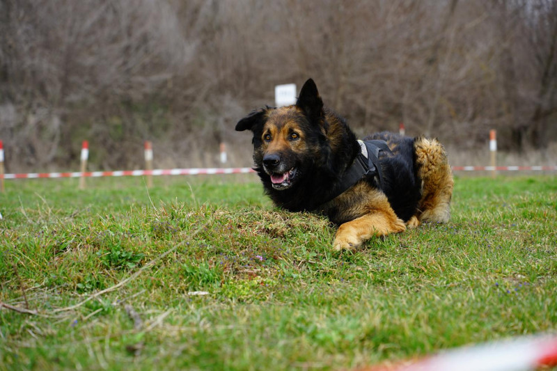 Знайшовши вибухівку, собака подає знак — стає в стійку або сідає. Тварин готують до різних робіт та подій.