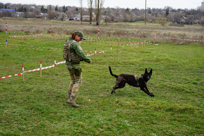Службових собак для розмінування тренують в Україні, втім, потрапляють вони сюди з-за кордону. Кінологиня-сапер Тетяна працює з мінно-розшуковою собакою Лілі, якій 4 роки. Вона народилася в Німеччині.