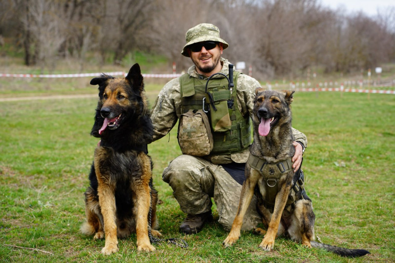 Кінолог-сапер Михайло зі службовими собаками Річем і Кокою Суспільне Миколаїв/Олександр Гордієнко