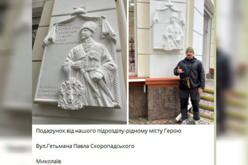 Ілля Зелінський біля меморіальної дошки Павлу Скоропадському на колишній вулиці Адмірала Макарова. Фото з фейсбук-сторінки Іллі Зелінського