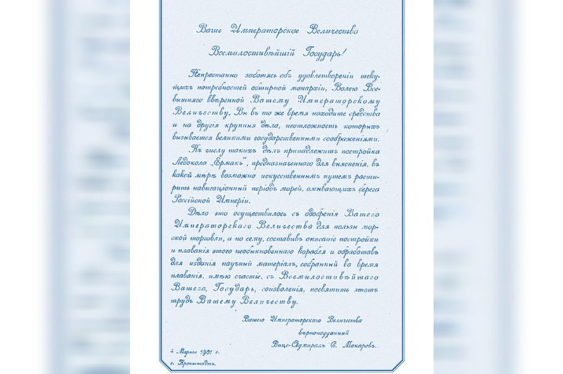 Присвята Миколі ІІ в першому виданні книги С.Макарова «Ермак во льдах». З архівних документів