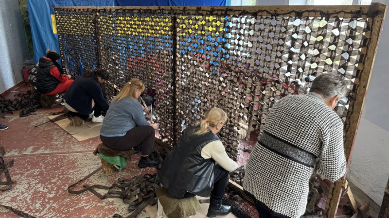 "Це зараз дуже актуально. Тому що вони заплутуються ось в цій основі і тим самим рятують життя. Нам розповідали це військові, яким ми передавали сітки", — розповіла жінка.