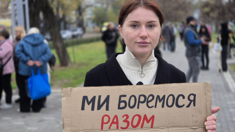 "Зараз невідомо його місце знаходження. Зв'язку, звичайно, з ним немає, листи їм писати заборонено. Останній лист, який я спробувала написати був у вересні. Дуже надіюсь, що він до нього дійшов і він надасть йому сили триматися далі", — говорить учасниця акції.