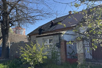 Люди ремонтують дах будинку. Суспільне Миколаїв/Олександр Гордієнко