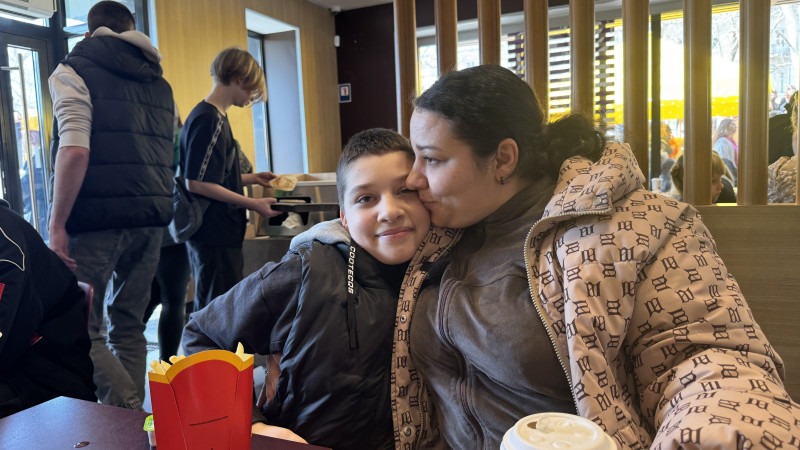"Єгорка, мій онук, хоче картоплі фрі. Зачекаємо. Він ще не їв, тому що був за кордоном довгий час. Це тітонька йому розповіла. То дуже смачна картопелька і будемо їсти тут", — розповіла жінка.