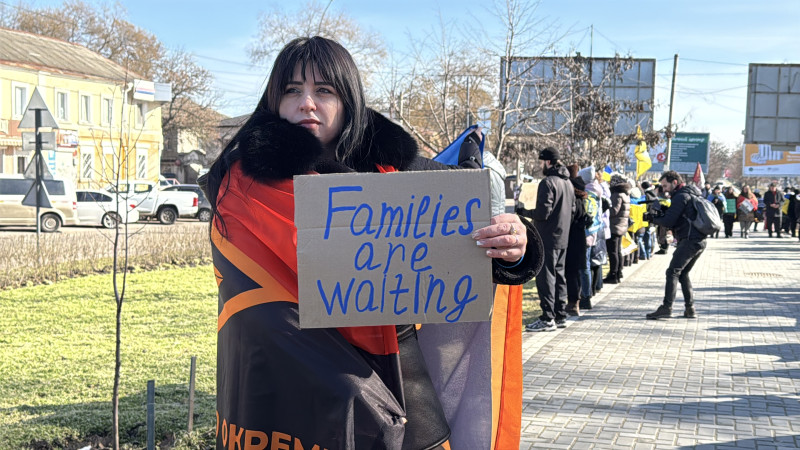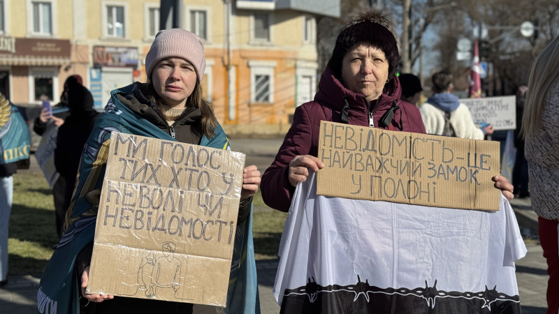 "Ми приходимо з донечкою вже скоро буде рік, як ми ходимо на акції у підтримку полонених. У нас, слава Богу, у полоні нікого немає, але ми ходимо підтримувати наші родини, які чекають, бо на цій війна чужих, як то кажуть, немає", — каже жінка.
