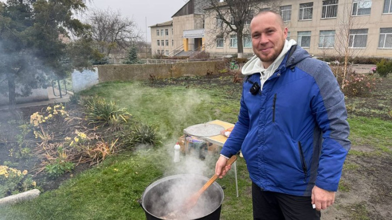 "Сьогодні у нас в меню плов і рибна юшка. Зараз це все в нас у процесі і ми будемо годувати їх гарячими блюдами", — каже Володимир.