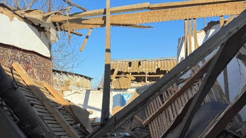 Руйнування на місці влучання російського снаряда на Херсонщині, лютий 2025 року. Поліція Херсонської області/Telegram