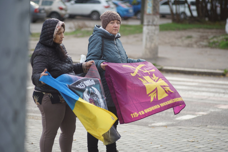 "На прапорі зображений мій брат, який зник безвісти на Харківщині, у Вовчанських хуторах, 21 травня 2025 року. І досі ми нічого не знаємо про нього. Ми його чекаємо, сподіваємося, що він живий, у полоні, і скоро повернеться", — розповідає учасниця акції Людмила.