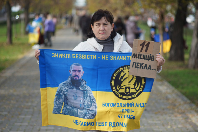 У середмісті Миколаєва, зі світлинами тих, кого чекають з полону та безвісти зниклих оборонців, зібралися на щотижневу акцію-нагадування "Не мовчи. Полон вбиває!" понад 250 людей.