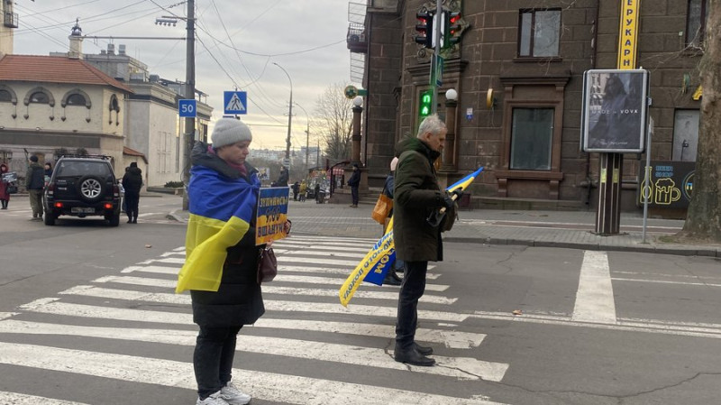 Традиційно о 9:00 миколаївці долучились до загальнонаціональної хвилини мовчання. Вони вийшли з плакатами та прапорами, аби вшанувати пам'ять загиблих.