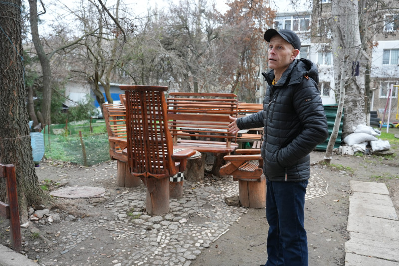 "Спершу поставив великий круглий стіл — це пеньок. Воно мало позитивний вплив — викликало хороший настрій, коли люди почали між собою спілкуватися. І я бачив, що місця не вистачає. Надалі я почав доповнювати ці місця і прикрашати таким чином, щоб воно було і зручно, і гарно, і приємно".