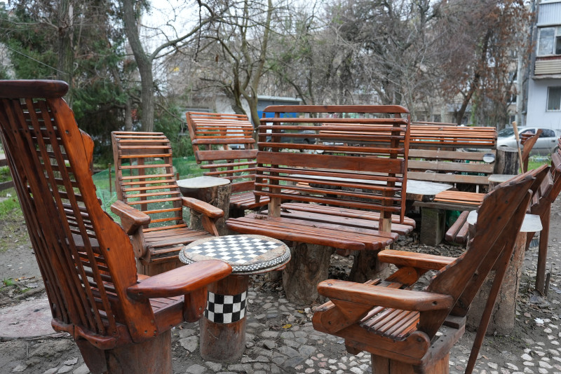 Дерев’яні лавочки та стіл на локації. Суспільне Миколаїв/Маріетта Мкртчян