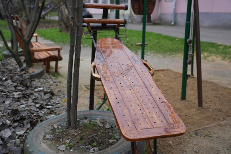 "Була побутова споруда з квартири — переробили її під те, щоб можна було займатися і качати прес. Кут змінюється технічно, теж піднімається ця вся система. Кнопочка є, можна нижче опускати. Такий маленький спортивний майданчик у нас".
