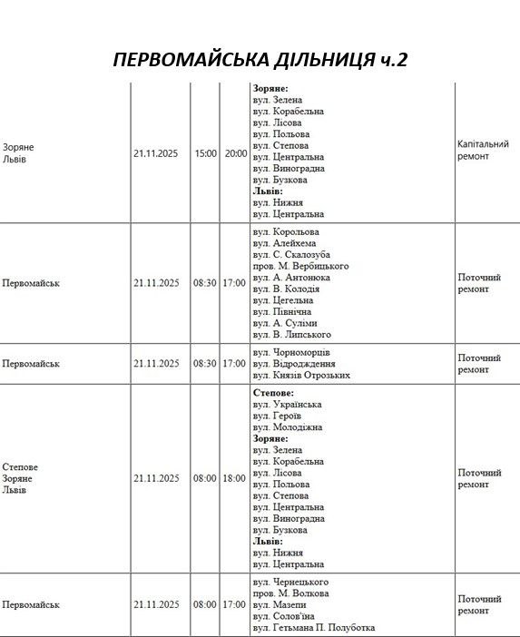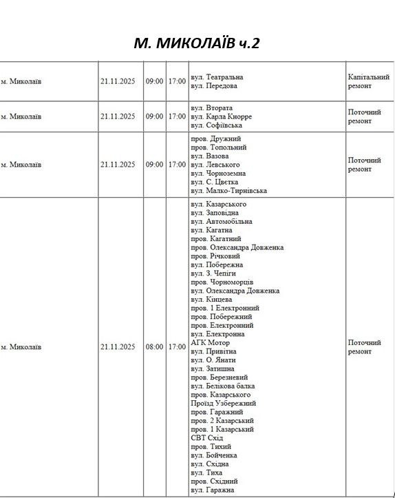 На Миколаївщині 21 листопада частина вулиць залишиться без електропостачання. Це пов'язано ремонтами, технічними обслуговуваннями, реконструкціями та модернізаціями.